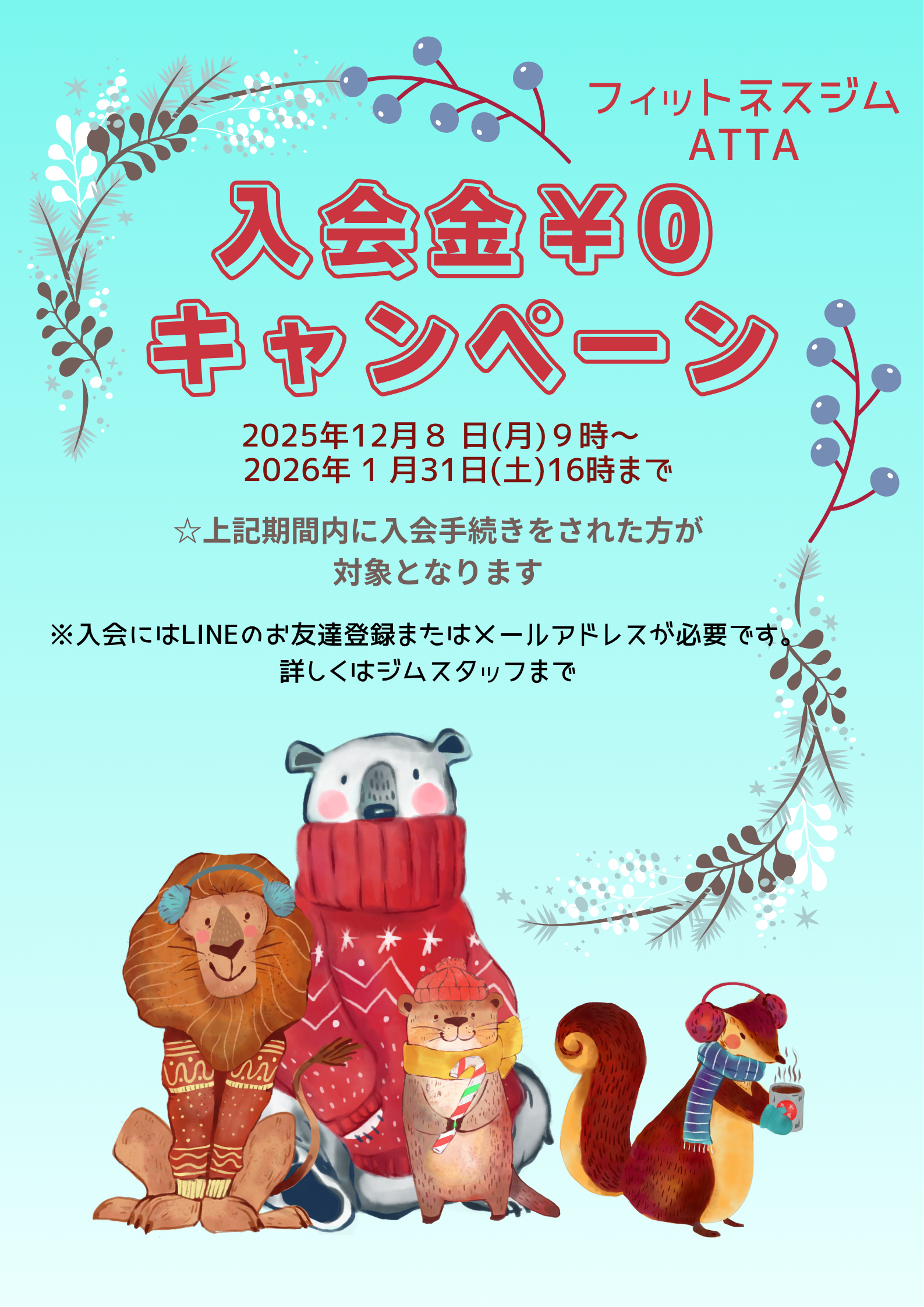 R7.12/8(月)9時~R8.1/31(土)16時まで入会金無料キャンペーンを開催します🎉